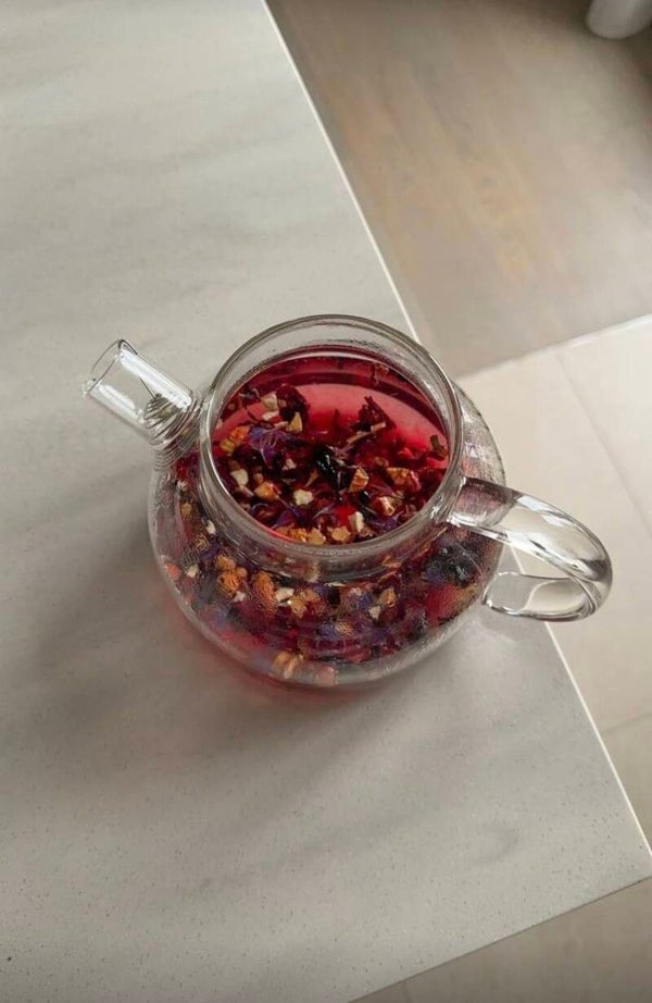 Hibiscusthee is een cafeïnevrije, zure en gezonde drank die bekend staat om het verlagen van de bloeddruk en het slechte cholesterol (LDL).Het is rijk aan antioxidanten en vitamine C, wat het immuunsysteem ondersteunt. Bovendien werkt het vochtafdrijvend, ontstekingsremmend en kan het helpen bij gewichtsbeheersing.